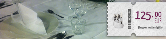 Es wartet ein exquisites 4-Gang-Menü auf uns! Freuen Sie sich zum Beispiel auf Carpaccio vom Waguy Beef – besser bekannt als Kobe Rind – mit Rucola und Nuss-Pesto. Nach dem Auszug von Hummer und Safran, reichen wir feines Entrecote mit gebratenem Spargelsalat. Als süßen Gaumenschmaus wird geeistes Basilikumtörtchen mit Erdbeeren und Pfeffer gereicht. Sie werden begeistert sein.